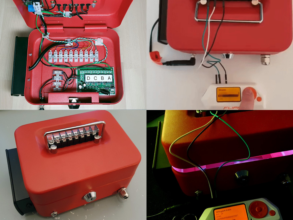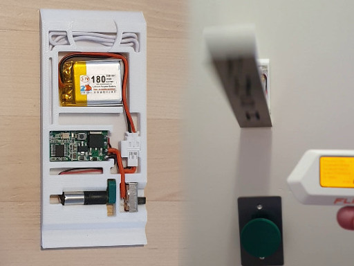 Disguising a mechanical "Useless Machine"-style mechanism in a ubiquitous wall box to release a Request-to-Exit button on demand, for physical penetration testing.