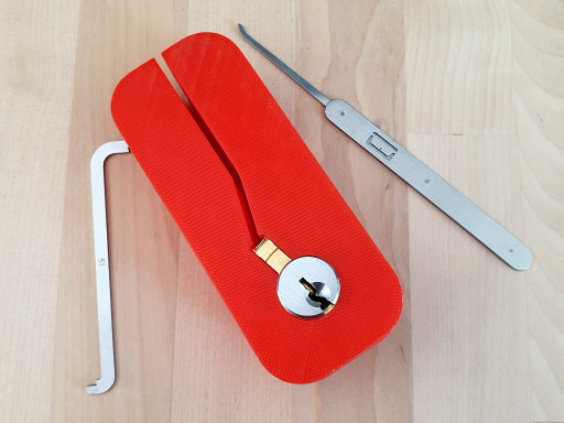 A 3D-printable holder originally designed for the Red Team Tools' Progressive Training Lock Set, but should work with any similar lock core. Allows for ergonomic (and fatigue-reducing) top-of-the-keyway picking.