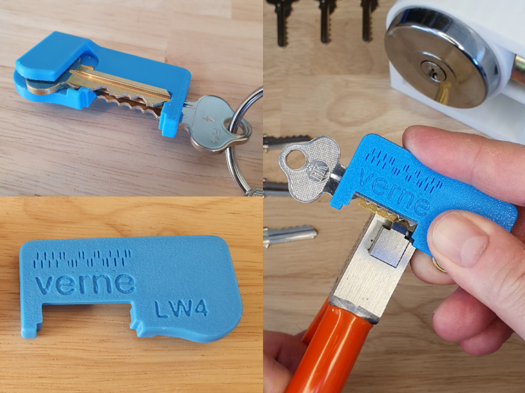 Lockwood & Schlage key duplication clamp, compatible with Lishi key cutting pliers. Available for purchase at the end of 2025.